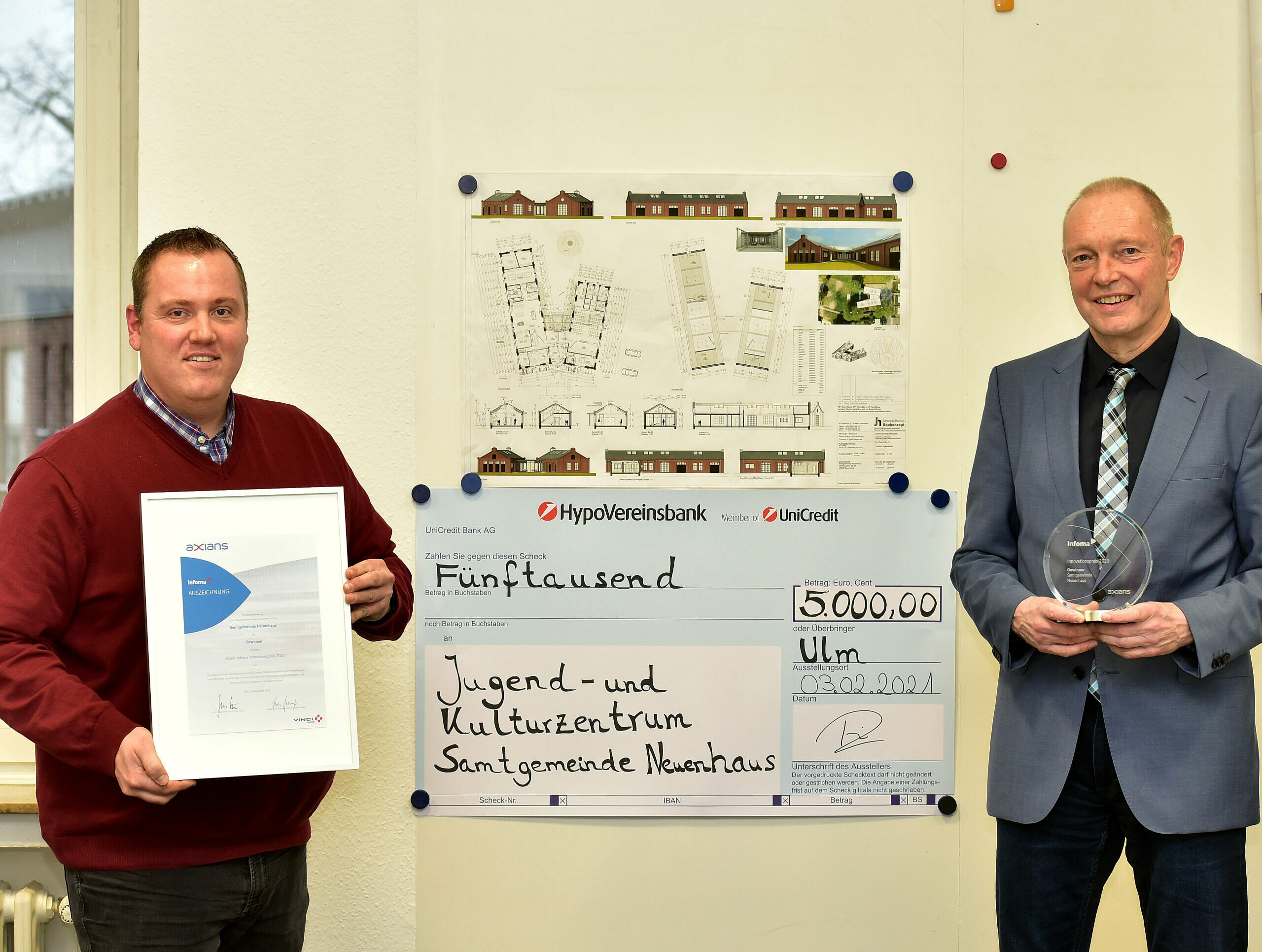 Die innovative und kundenorientierte Arbeit von Kommunen zu würdigen, ist der Anspruch des bereits zum achten Mal in Folge verliehenen Axians Infoma Innovationspreises. Auch 2020 vergaben wir die Auszeichnung an drei Verwaltungen für ihre beispielgebenden zukunftsorientierten Projekte. Die Preisträger – Samtgemeinde Neuenhaus, Stadtbetriebe Grevenbroich und Kreisstadt Bergheim – überzeugten mit der umfassenden Digitalisierung durchgehender Geschäftsprozesse und Verwaltungsbereiche. Juror war wie in den vergangenen Jahren Dr. Jens Weiß, Professor für Verwaltungswissenschaften an der Hochschule Harz. Wir gratulieren den Preisträgern herzlich und bedanken uns gleichzeitig bei allen Bewerbern für das große Engagement.