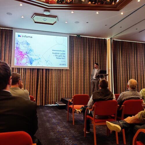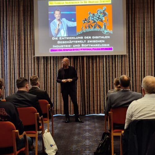 Als Keynote-Speaker konnten wir in diesem Jahr Professor Dr. Stefan Stoll von der DHBW Villingen-Schwenningen gewinnen. In seinem Vortrag „Die Entwicklung der digitalen Geschäftswelt zwischen Industrie- und Softwarelogik“ befasste er sich mit der digitalen Zukunft. In einer Reihe von intensiven Workshops informierten die Axians Infoma Expert:innen ausführlich über die Entwicklungen und Möglichkeiten, aber auch die Zukunftschancen in den beiden Fachbereichen. Dabei stand die Digitalisierung von Verwaltungsprozessen – auch durch Einsatz von Künstlicher Intelligenz – im Fokus.