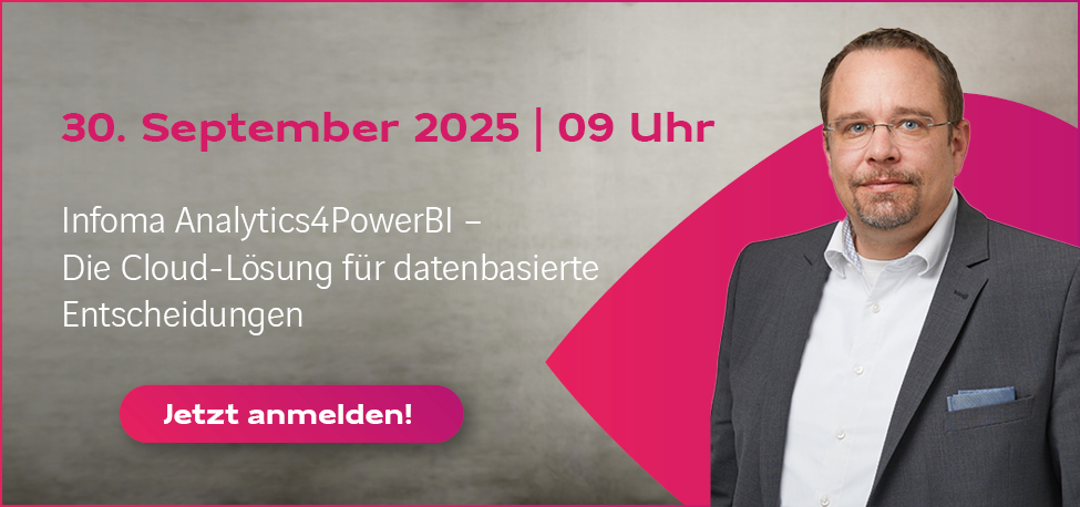 Erfahren Sie im WebCast, wie das neue Modul Infoma Analytics4PowerBI als moderne Business-Intelligence-Lösung Ihre kommunalen Finanzdaten in echte Erkenntnisse verwandelt. Direkt integriert in Infoma Online, liefert das Modul tagesaktuelle Kennzahlen aus Haushaltsplanung, Liquiditätsmanagement und Investitionscontrolling – inklusive KI-basierter Prognosen und Plan‐/Ist‐Vergleiche zur präzisen Steuerung Ihrer Verwaltung.
