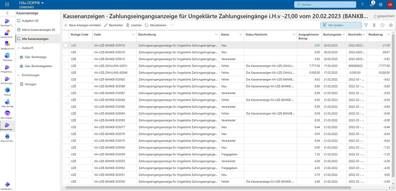 Die Infoma App Kassenanzeige dient der dezentralen Aufklärung von ungeklärten Zahlungseingängen im Zahlungsverkehr und gewährleistet eine effiziente Weiterleitung, indem sie diese direkt an die zuständigen Kolleg:innen im Fachamt weiterleitet, was den Prozess erheblich beschleunigt. Die Bearbeitung mit Hilfe der App erfolgt einfach und nachvollziehbar. Dabei lassen sich Ausgleiche über offene Debitorenposten (Rechnungen) oder Verweise auf neue Anordnungen per Debitorennummer und externer Belegnummer (Kassenzeichen) hinterlegen, um die Zahlungen zuzuordnen. Für offene debitorische Zahlungen werden Kassenanzeigen erzeugt und einer Gruppe von Nutzer:innen zugeordnet. Die hohe Nachvollziehbarkeit und Transparenz gewährleisten eine klare Übersicht über die noch offenen ungeklärten Zahlungseingänge. Die App optimiert die Zusammenarbeit, indem sie eine schnelle und effiziente Bearbeitung direkt in den Fachämtern ermöglicht, Wartezeiten reduziert und die Kasse entlastet.