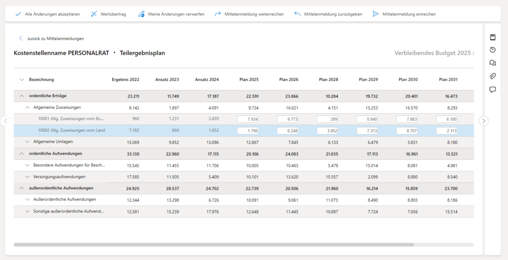 Dank intuitiver Bedienung ermöglichen die durchgängigen Abläufe die einfache und komfortable Aufstellung eines Haushaltsplans. Neben Planung und Erfassung inklusive Freigabe der Budgets tragen die Online-Präsentationsmöglichkeiten eines interaktiven Haushalts sowie eine dezentrale Budgetauskunft zu einem transparenten, effizienten und digitalen Finanzmanagement bei.