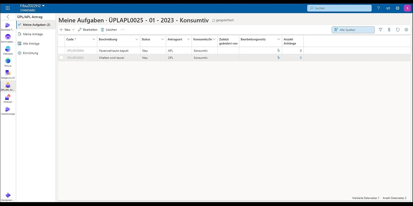 Die gesetzeskonforme Antragstellung wird durch die Einrichtung von Texten für die gesetzlichen Grundlagen der Mittelbereitstellung ermöglicht, sodass formal korrekte Anträge zur Genehmigung im Gemeinde- oder Stadtrat erstellt werden können. Die Integration mit Infoma gewährleistet, dass die Anträge nahtlos übermittelt werden können, um die Freigabe und Verbuchung durch die Finanzverwaltung sicherzustellen.