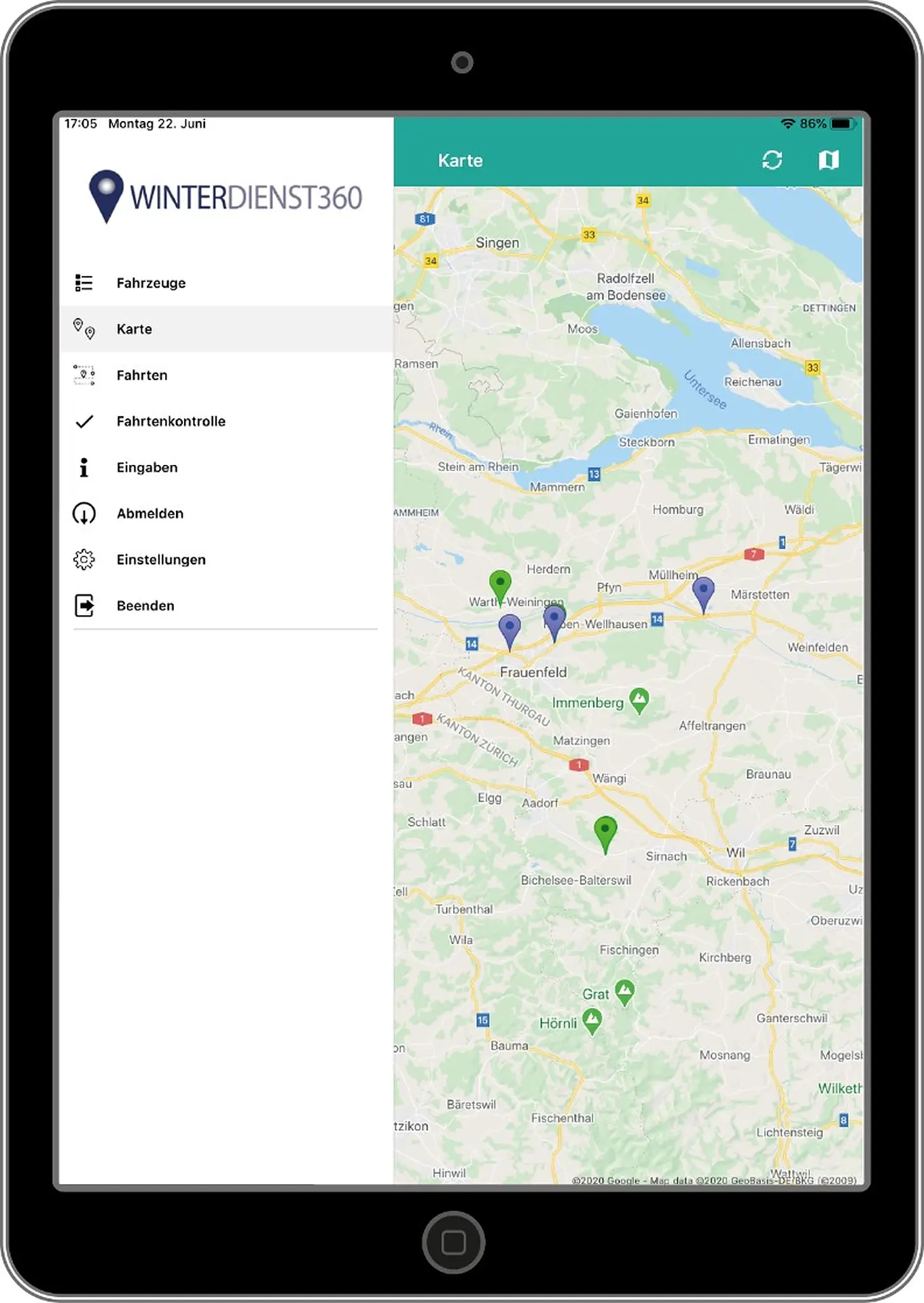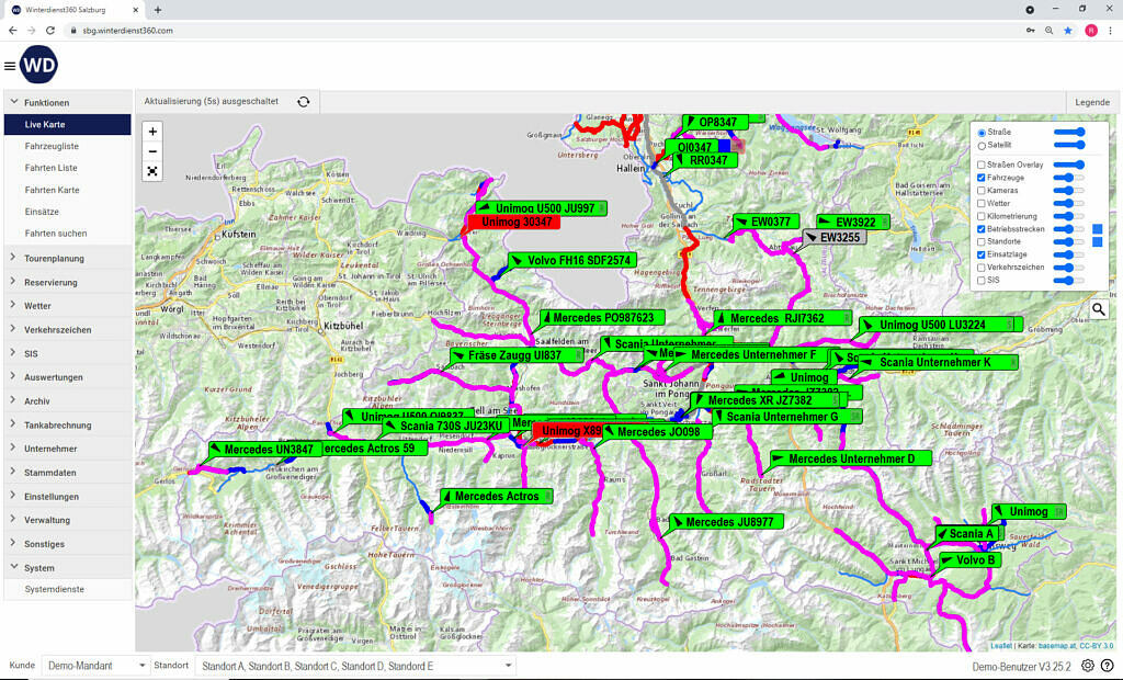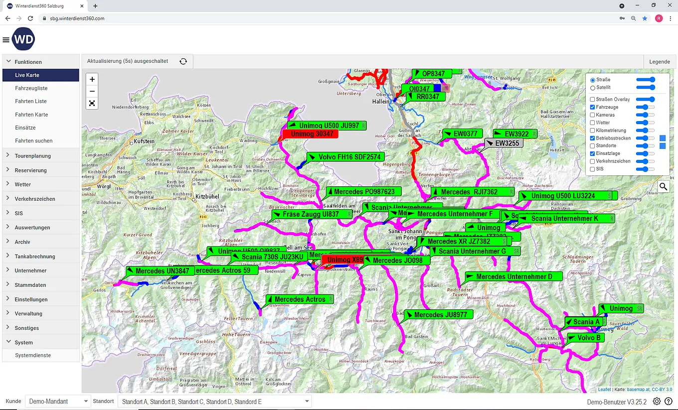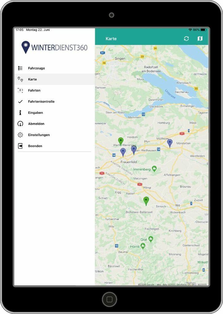 Dokumentiert als eigenständige, webbasierte und GPS-gestützte Softwarelösung „Winterdienst360“ inkl. App-Anwendung die Einsätze der Fahrzeugflotte und ermöglicht die aktive Verwaltung, Auswertung, Steuerung und Abrechnung des Fuhrparks im Winter- und Sommerdienst.