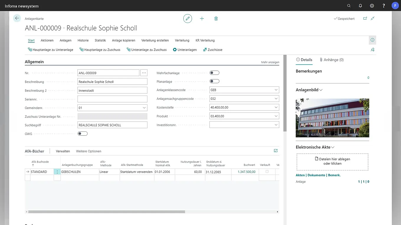 Unterstützt die Sachbearbeitenden im Finanzbereich in allen buchhalterischen Aufgaben zur Verwaltung des Anlagevermögens. Dabei werden verschiedenste Anforderungen nach steuer-, handels- oder haushaltsrechtlichen sowie anderen Rahmenbedingungen abgedeckt. Einkauf, Verkauf, Haupt- und Nebenbuchhaltung stimmen dadurch immer überein.