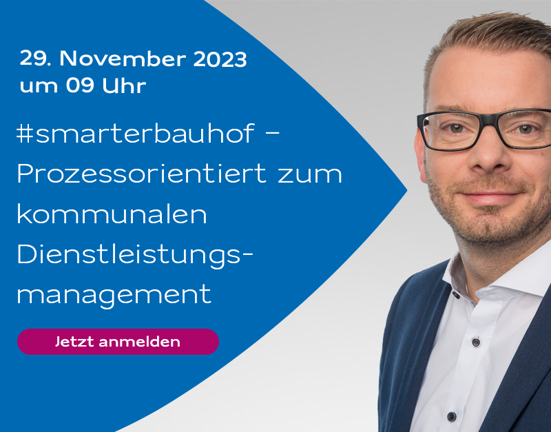 Unter dem Motto "#smarterbauhof" lädt der Webcast zum prozessorientierten kommunalen Dienstleistungsmanagement am 29. November um 9 Uhr ein. Jürgen Scherer wird als Referent Einblicke in innovative Ansätze und bewährte Strategien für einen effizienten Bauhof-Betrieb geben. Die Aufgabenvielfalt ist groß, die Abwicklung komplex. Wie digitale Prozesse die Arbeit kommunaler Betriebe erleichtern und den Weg zum smarten…