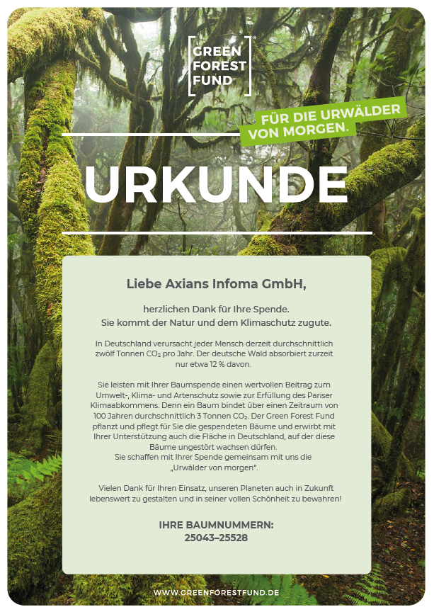 Wie bereits in der Ausgabe 4/22 unseres eMagazins berichtet, hat Axians Infoma 486 Bäume an den gemeinnützigen Verein Green Forest Fund e.V. gespendet (hier geht’s zum Bericht). Als dann die Einladung ins Haus flog, ein paar dieser Bäume vor Ort selbst zu pflanzen, war für uns klar: Ab in den Wald!