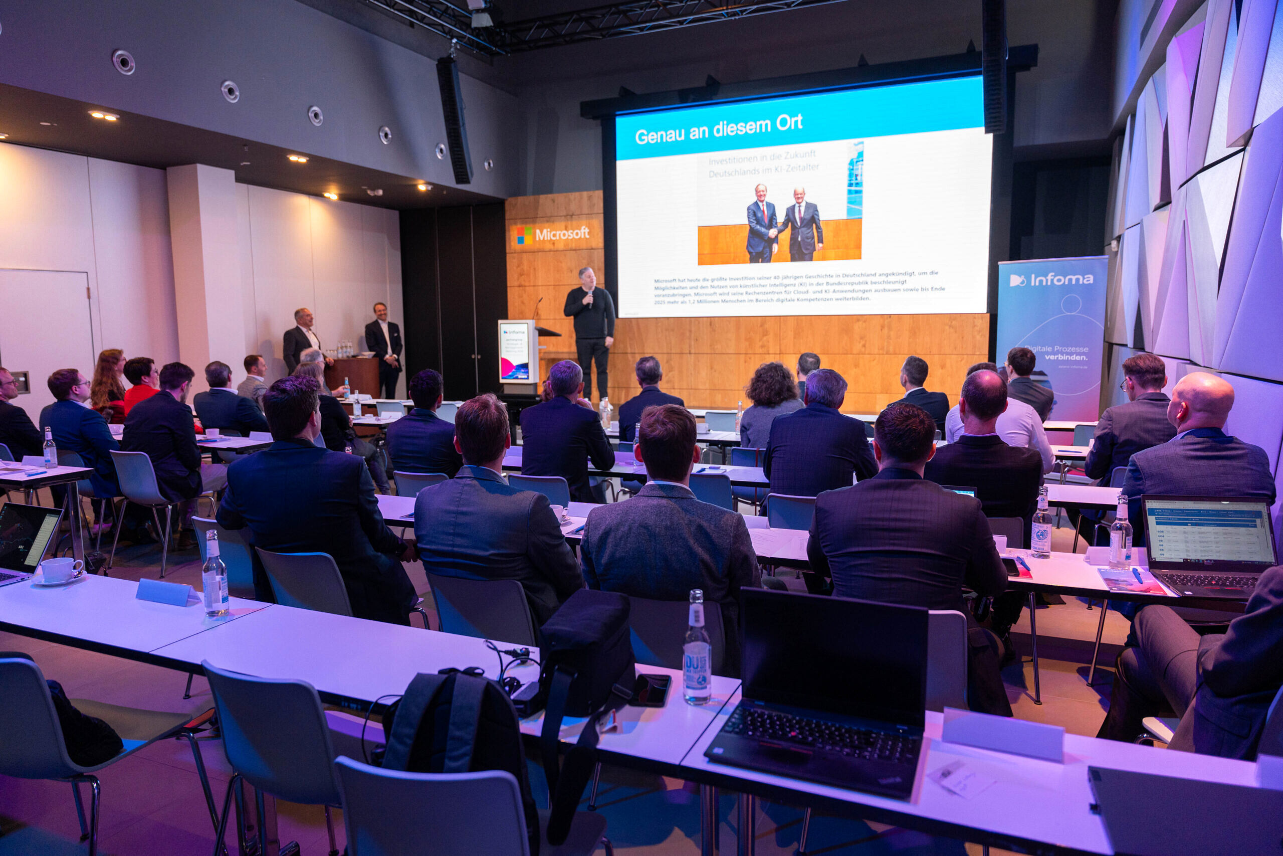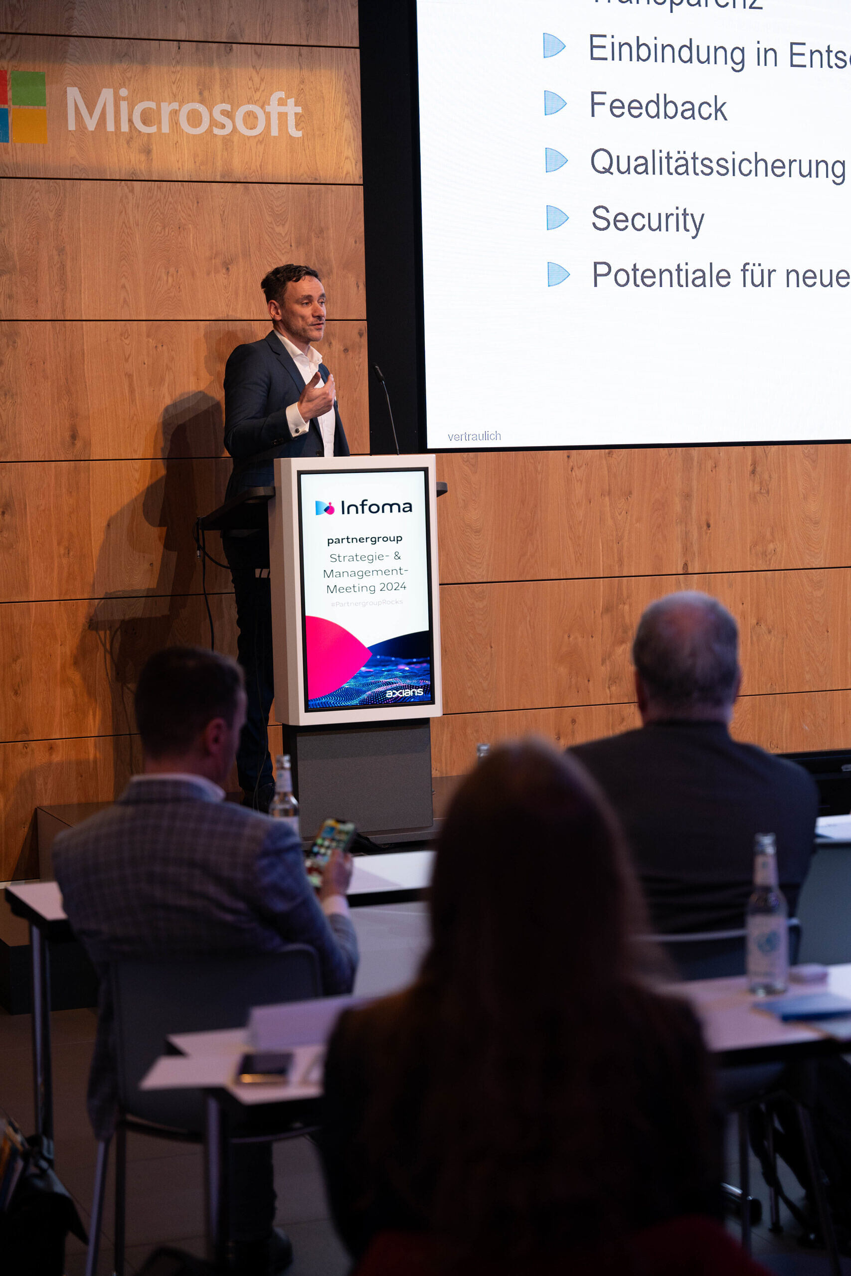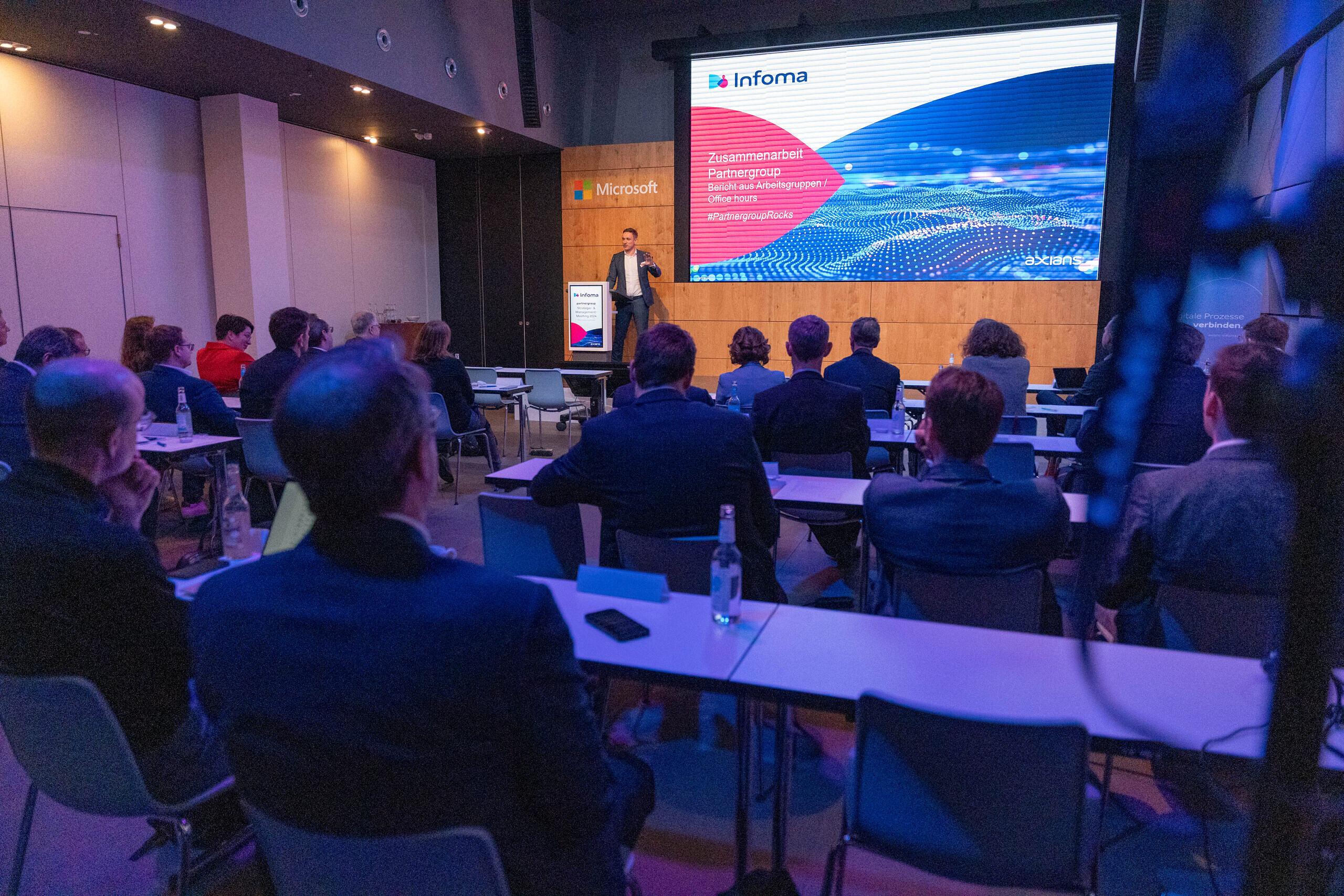 Am 29. Februar 2024 versammelte sich die partnergroup von Axians Infoma im Microsoft Atrium in Berlin zum Strategie- und Management-Meeting unter dem Motto „#PartnergroupRocks“. Die Veranstaltung bot eine Plattform für Diskussionen über aktuelle Marktchancen, die Vorstellung strategischer Ansätze und den Austausch von Best-Practice-Berichten. Zudem durften wir Gastreferenten von Microsoft begrüßen, die aktuelle Themen zu unter anderem Künstliche Intelligenz präsentierten.