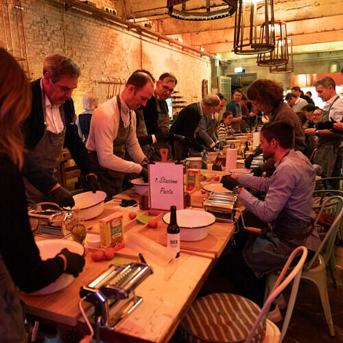 Der Abend wurde schließlich mit einem gemeinsamen italienischen Kochkurs abgerundet. Unter Anleitung erfahrener Köchinnen hatten die Teilnehmenden die Möglichkeit, selbst frische Nudeln herzustellen und sich dabei kulinarisch auszutauschen.