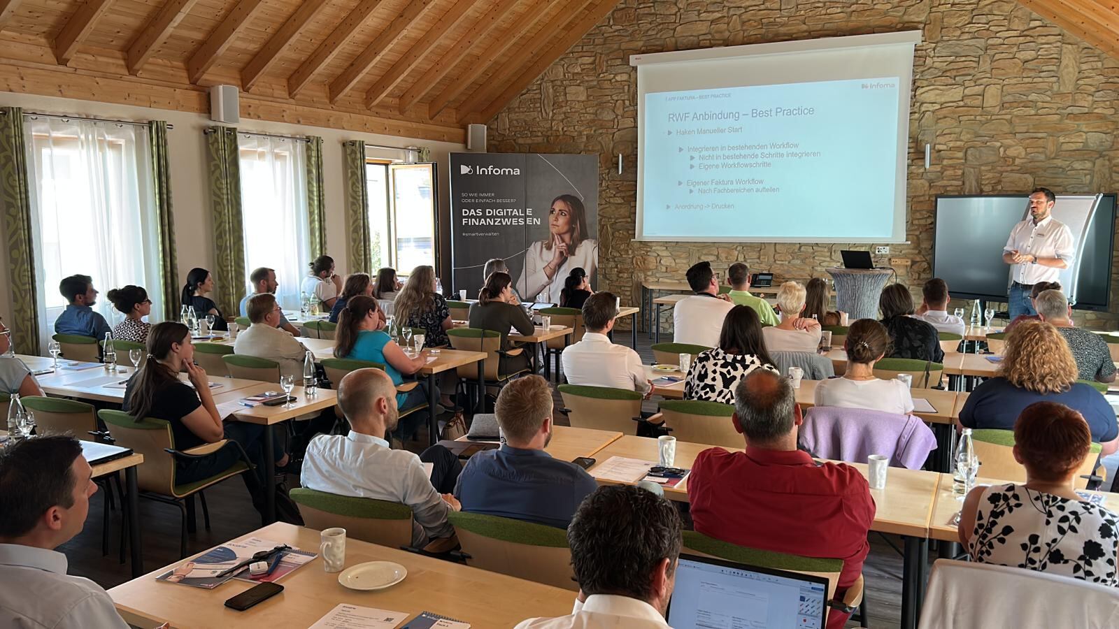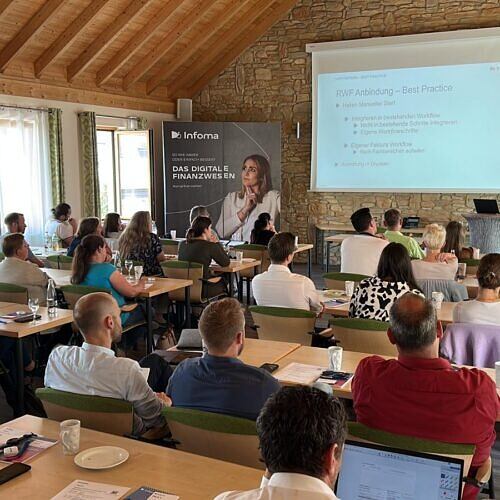 So ließen sich im Juni die Teilnehmenden aus Baden-Württemberg und Bayern im Schulungszentrum in Ulm zum Liegenschafts- und Gebäudemanagement/Kommunale Betriebe bzw. zum Finanzwesen mittels Fachvorträgen, Kundenreferenzen und in Gesprächsrunden über Neuheiten und Trends informieren – stets mit Blick auf die regionalen Anforderungen. Für die Anwender:innen des Finanzwesens aus der Region West führten die Expert:innen im Deutschen Werkzeugmuseum in Remscheid und im Pfalzhotel in Asselheim durch das Programm. Unsere Kunden aus der Region Nord/Ost luden wir in die neue und moderne Axians Geschäftsstelle in Hamburg ein.