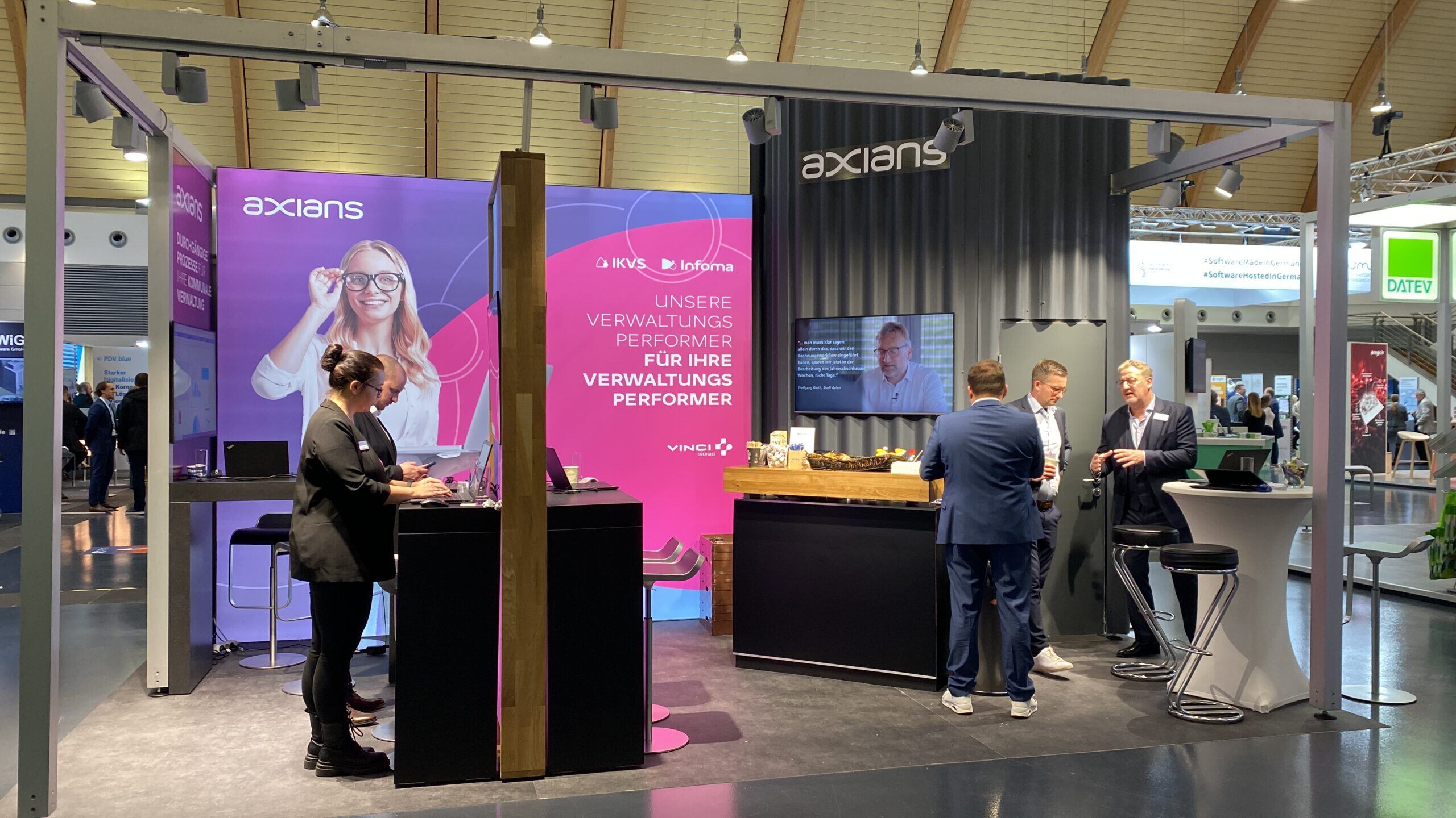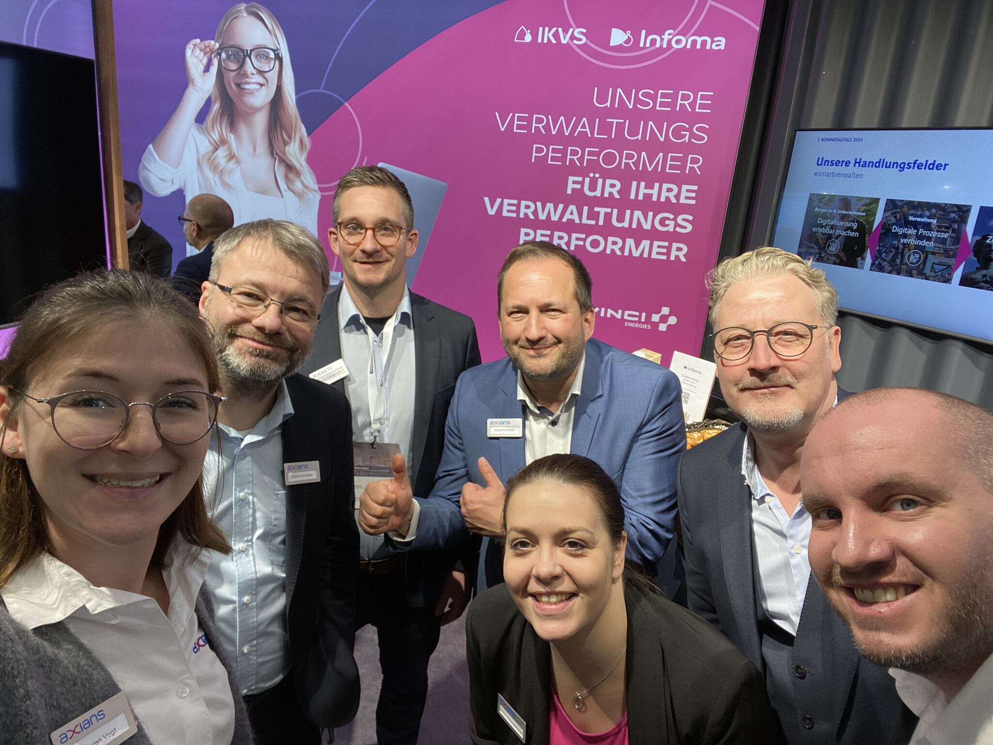 Auf der KommDIGITALE präsentierten sich Axians Infoma und Axians IKVS gemeinsam. Mit einer klaren Botschaft – smarte Verwaltung und digitale Prozesse für die Zukunft – wurde gezeigt, wie moderne Verwaltungsarbeit gestaltet werden kann. Viele Besuchende nutzten die Gelegenheit zu intensiven Gesprächen und einem wertvollen Austausch über innovative Lösungen. Es war schön zu sehen, wie Axians Infoma und Axians IKVS gemeinsam ihre Stärken bündeln, um zukunftsweisende Ansätze für die digitale Transformation der Verwaltung voranzutreiben.