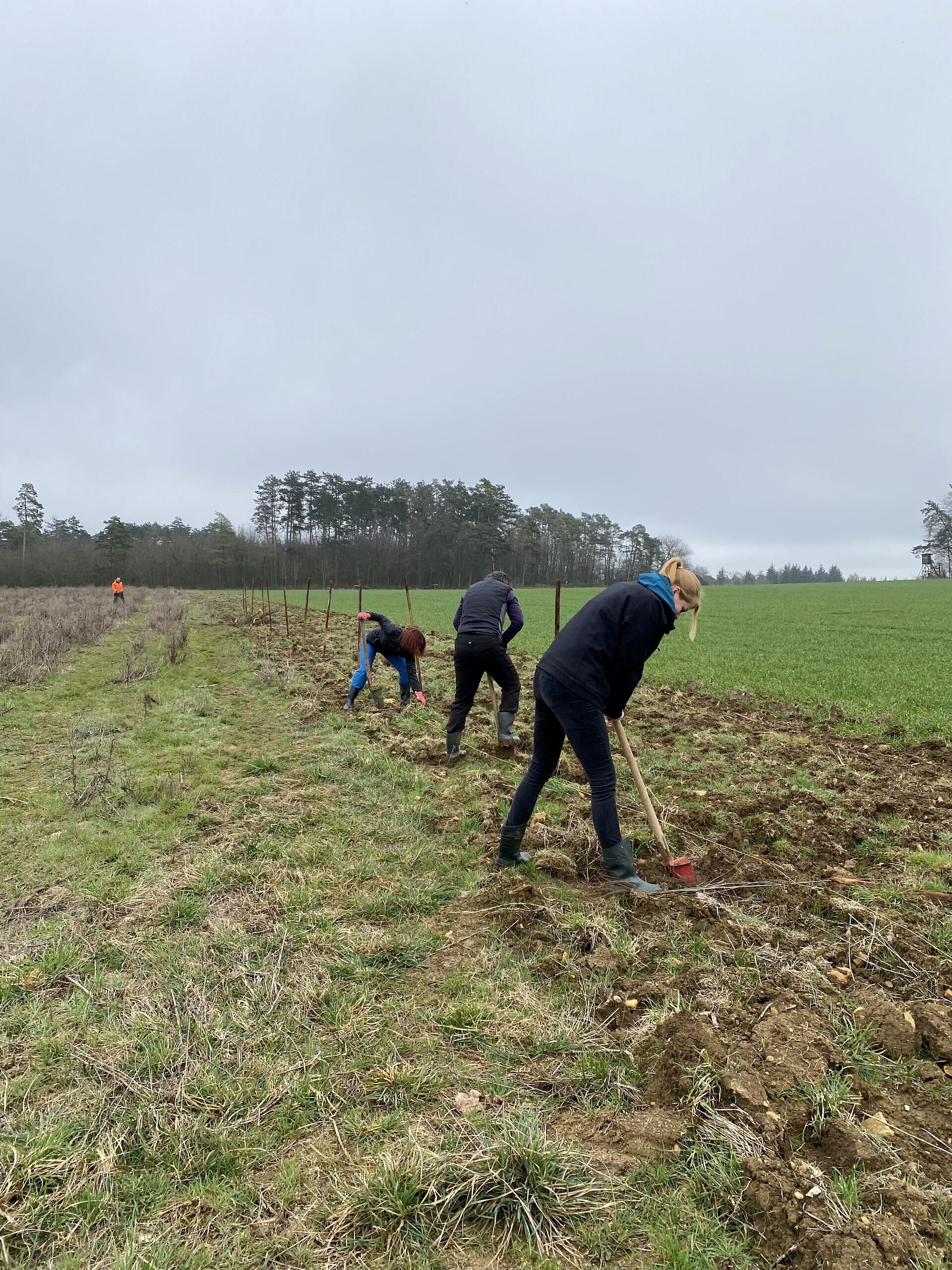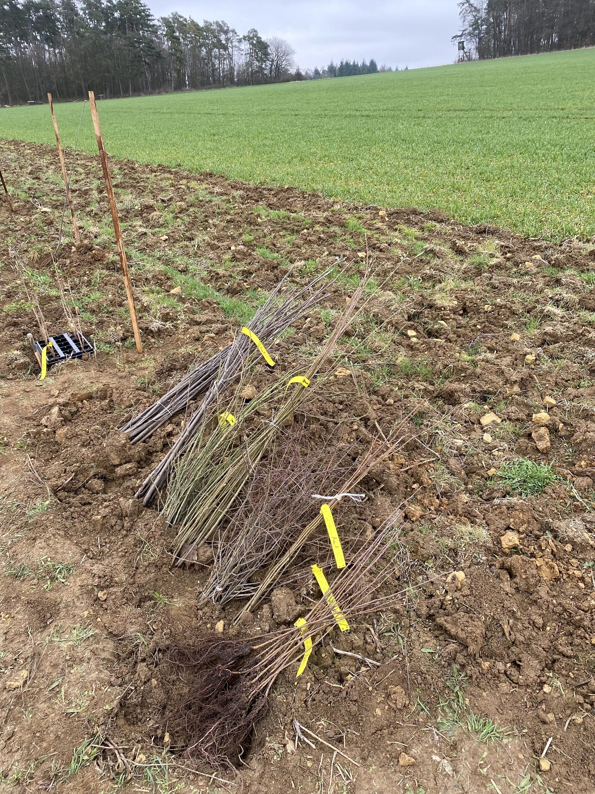 Mit knapp 60 Bäumen wurde auf einer brachliegenden Ackerfläche im baden-württembergischen Hardheim der Grundstein für den Wald von morgen gelegt. Dabei packten unsere Kolleg:innen zusammen mit eingeladenen Kunden und Vereinsmitgliedern auch selbst fleißig mit an.